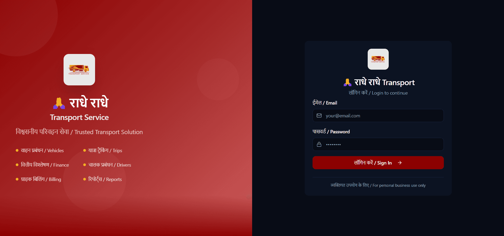 A modern transport service website designed to streamline logistics and improve customer accessibility. The platform allows users to explore services, request bookings, and get real-time information in a simple and user-friendly interface. Built with a focus on performance and clarity, the website ensures smooth navigation across devices while presenting services in a structured and visually appealing way. Key features include service listings, booking inquiries, and responsive design for seamless user experience. The goal of this project was to create a reliable digital presence for a transport business, making it easier for customers to connect, book services, and access information efficiently.